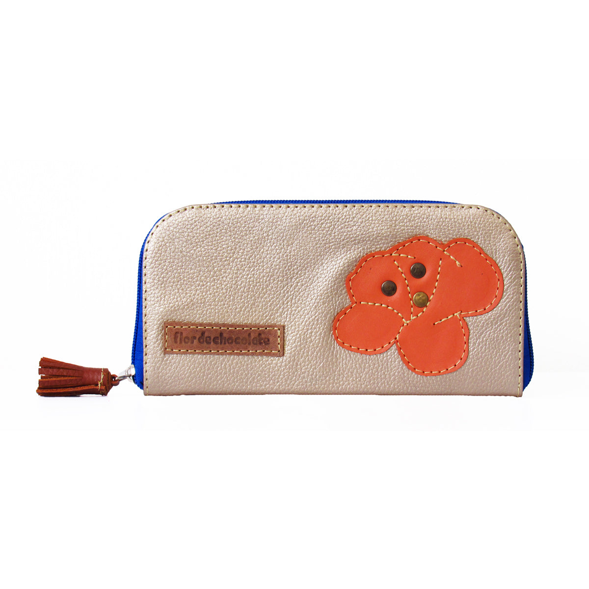 Pieza elaborada en cuero vacuno, posee cierre superior, 2 compartimientos para billetes, portamonedas central con cierre y 8 divisiones para documentos y tarjetas