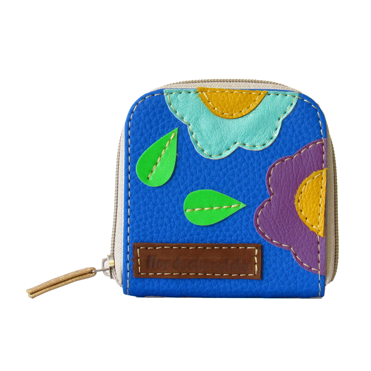 Pieza elaborada en semi cuero vegano, posee cierre superior, portamonedas central y