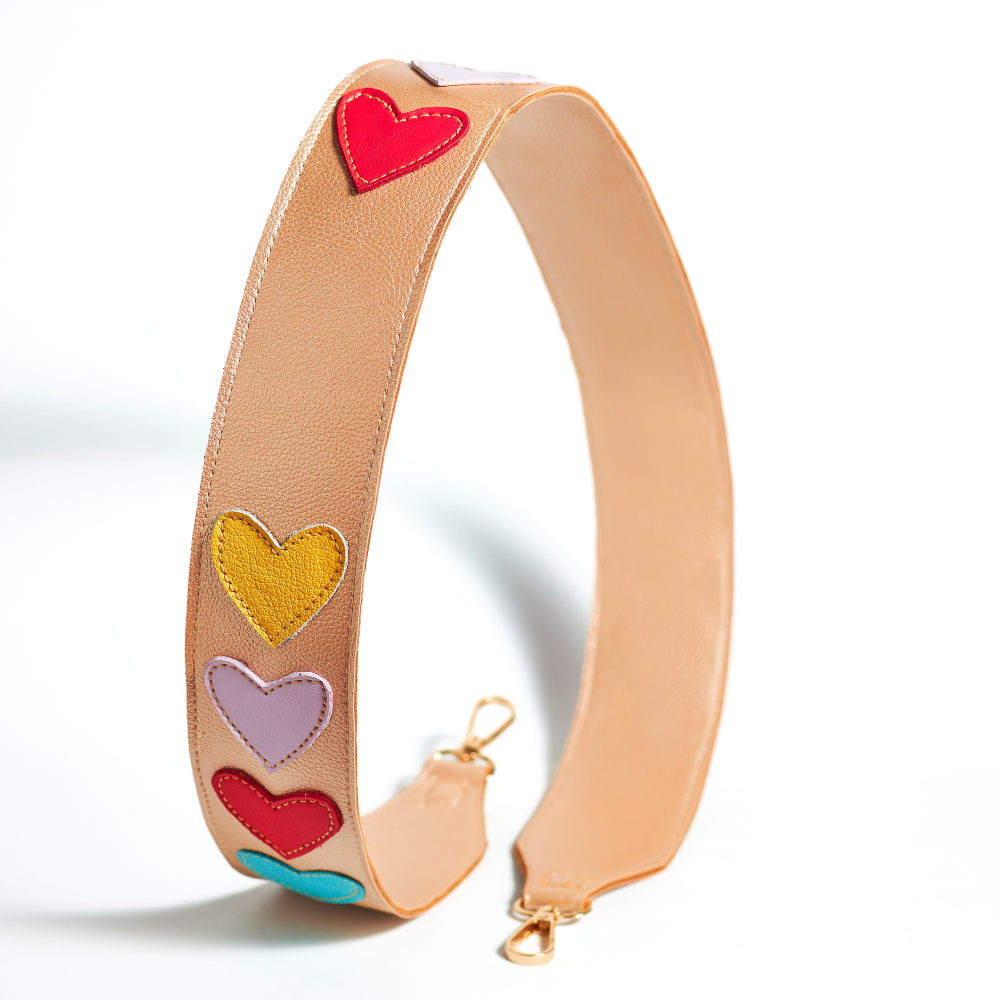 Correa fija de 4 cm de ancho con aplicaciones cortadas a mano y mosquetones dorados en sus puntas para que puedas adaptarla a cualquiera de tus bandoleras.