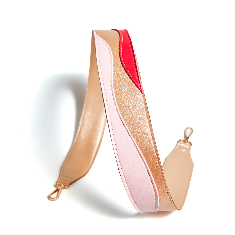 Correa fija de 4 cm de ancho con aplicaciones cortadas a mano y mosquetones dorados en sus puntas para que puedas adaptarla a cualquiera de tus bandoleras.