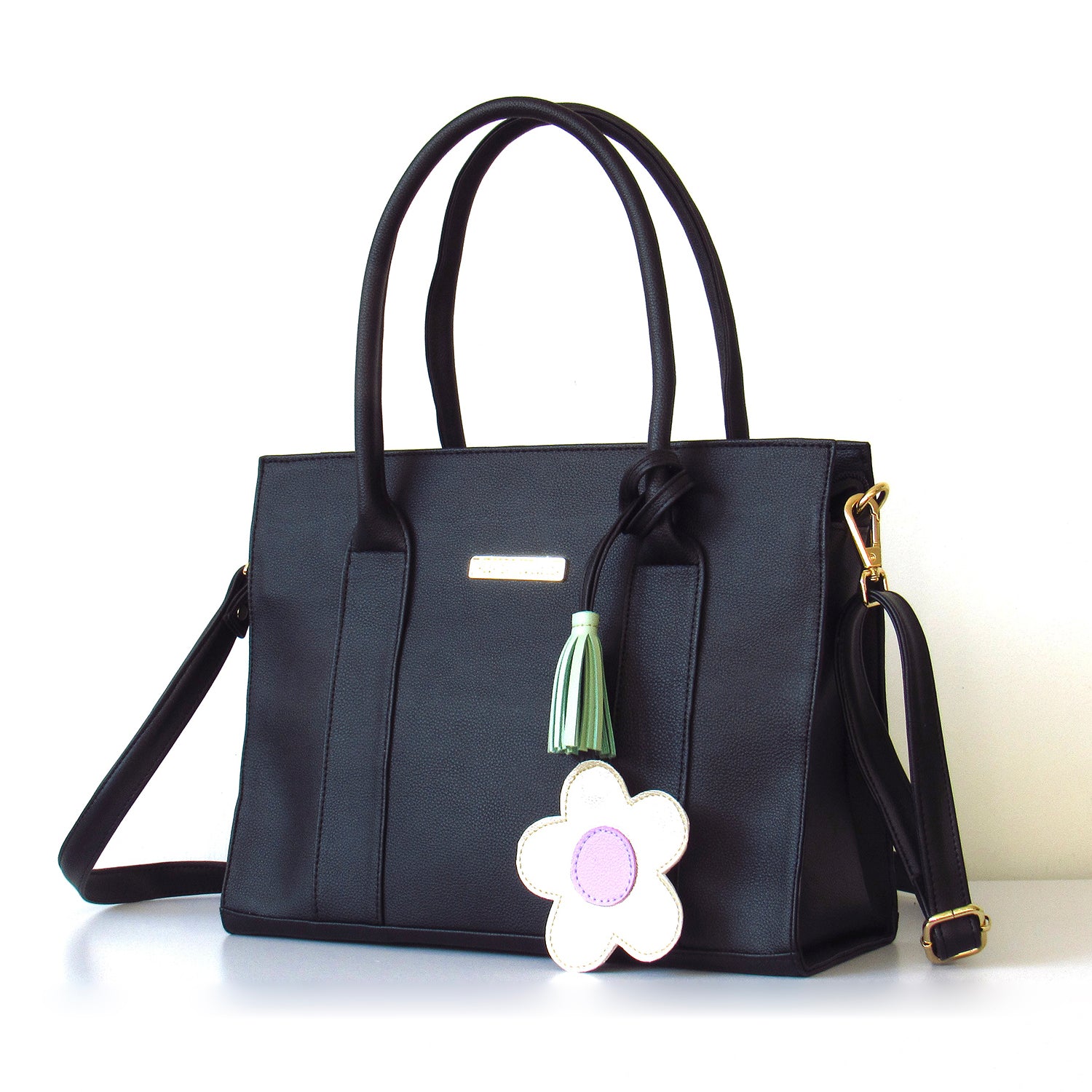 Nuestro Satchel clásico y atemporal, ahora con nuestra Icónica Flor. Tiene la combinación perfecta de estilo y versatilidad. Puedes llevarla de mano y con su correa removible en el hombro o cruzada.
