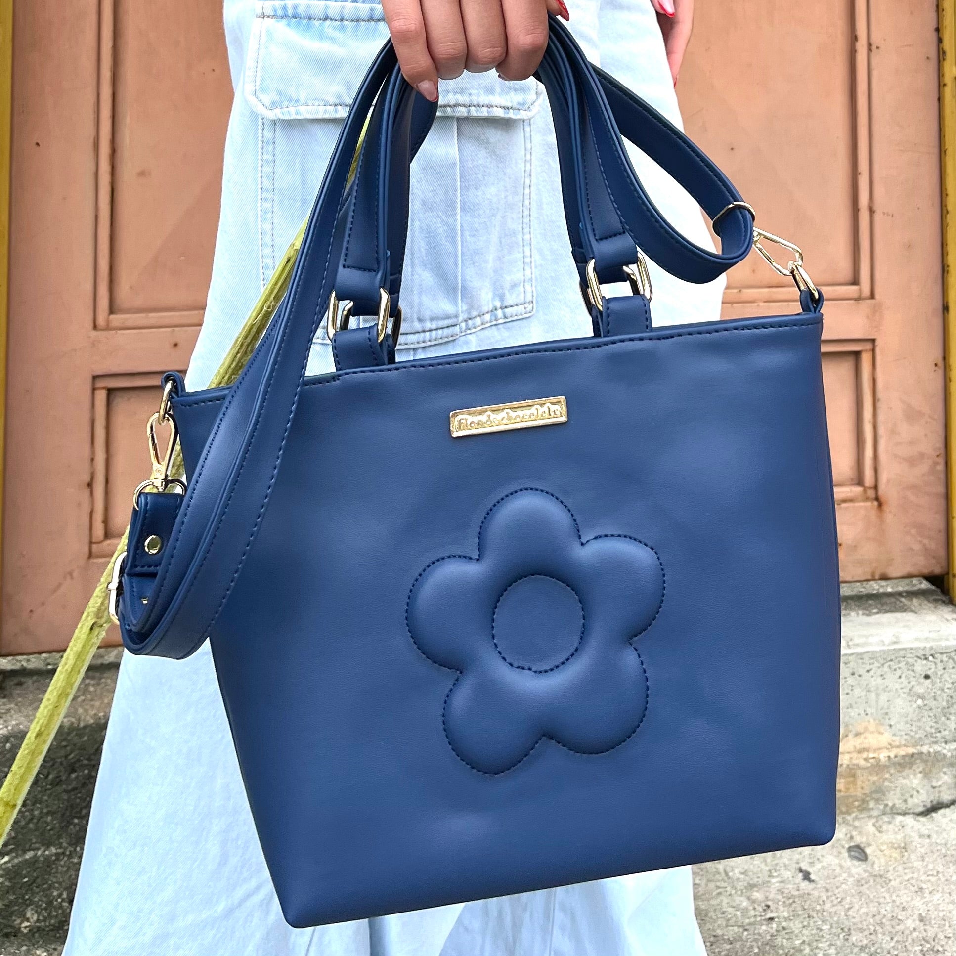 Hecha en cuero vegano, con herrajes dorados, cierre superior, con una hermosa correa removible de 2 cm de ancho, asas cortas de 14 cm de altura para que la lleves en la mano con estilo, fondo plano. En su interior dos bolsillos y su forro es en textil impermeable.