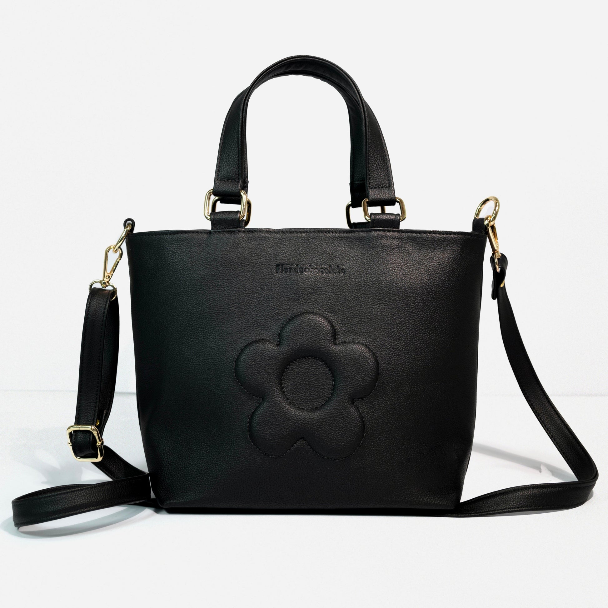Hecha en cuero vegano, con herrajes dorados, cierre superior, con una hermosa correa removible de 2 cm de ancho, asas cortas de 14 cm de altura para que la lleves en la mano con estilo, fondo plano. En su interior dos bolsillos y su forro es en textil impermeable.