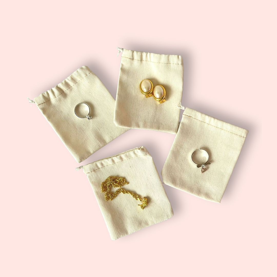 Piezas elaboradas en textil de algodón, poseen cordón para cerrar.